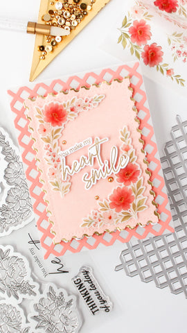 Use our innovative, one-piece dies to cut every design in one pass, giving you more time to create! The stamp set contains two stamps with all the various floral images. The washi tape contains all images in a single panel—simply align both dies on the panel and die cut every image in one pass. This die set includes a hidden magnet within the packaging that keeps the multiple pieces of the die in place.