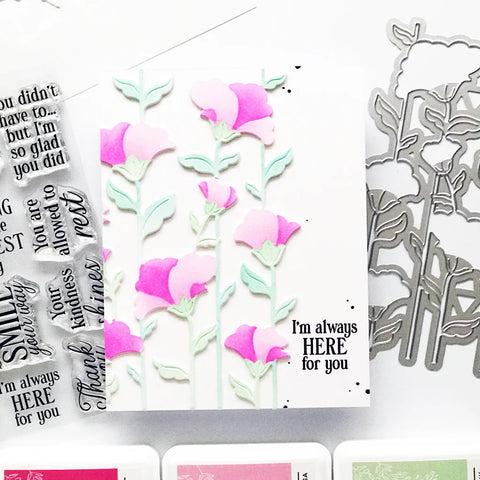 Let your cards bloom skyward with the Rising Wildflowers die and stencil set, designed by Inna Moreva. This tall, vertical bouquet features whimsical wildflower stems rising up the card front, perfect for adding movement and height to your designs.