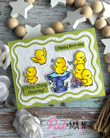 Cut three different sizes of wavy shapes, and accent them with wavy frames.