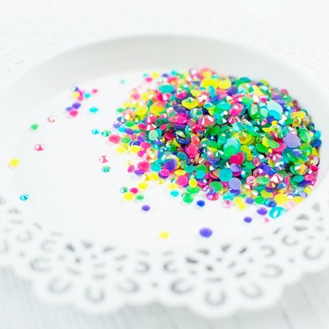 Add a touch of glitz and glam to your craft projects with this beautiful batch of Party jewels in 3mm, 4mm, 5mm and 6mm. These are the perfect embellishment for your cards, scrapbook pages, gift wrapping or paper crafts. Colors include: Amethyst, Lemon Drop, Shamrock, Caribbean Blue, and Watermelon.