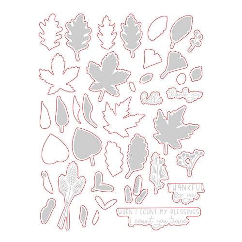 Coordinating Hello Fall stamp set shown in light grey, sold separately.