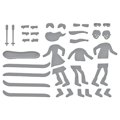 Hit the Slopes Etched Dies are from the Ski-son's Greetings Collection by Simon Hurley. When assembled, this set of 11 thin metal cutting dies creates a boy and a girl skier or snowboarder. Add in their goggles, skis, boards and other items, and they’re ready to hit the slopes!