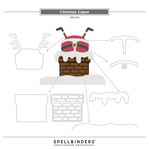 Chimney Caper Clear Stamp & Die Set is from the Merry Mischief Collection. This set of eight thin metal cutting dies assembles a humous predicament that Santa is in with a chimney! It’s sure to bring a chuckle. There are three sentiment stamps fitting for the occasion: "may Santa's visit bring you holiday cheer," "delivering magic" and "cozy wishes for a Merry Christmas." The finished Santa in Chimney measures approximately 4.25 x 3.70 in./10.80 x 9.40 cm.