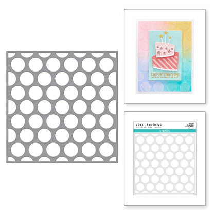 The On the Dots Stencil is from the Birthday Celebrations Collection. This 6 x 6-inch mylar stencil is filled with large happy circles! For a fun and whimsical background to your projects, add various mediums like inks, paints, paste and more.