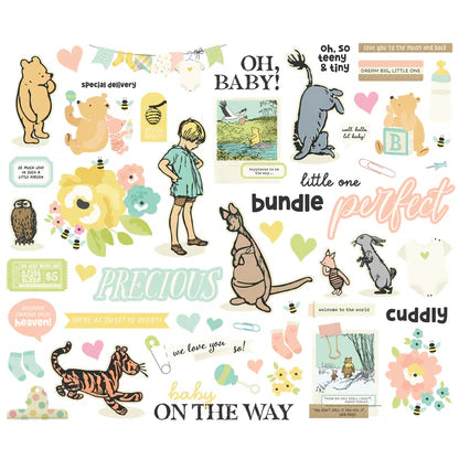 Say Cheese Classic Pooh Baby – Bits & Pieces includes 56 die-cut ephemera pieces featuring hearts, baby gear, flowers, phrases, banners and of course, your favorite friends from the Hundred Acre Wood! Sprinkle some soft and gentle hues of this sweet storybook motif into your projects with the Say Cheese Classic Pooh Baby - Bits & Pieces!