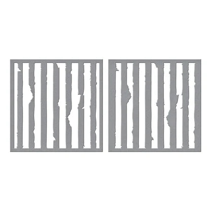 Tattered Stripes Stencils are made of durable mylar stencil material. The two 6.00 x 6.00 in. stencil sheets create a distressed striped pattern for a wonderful background to your projects.Use them for all types of mediums from inks, paints, pastes and more!