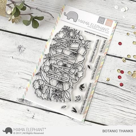 Botanic Thanks features the word "thanks" in front of a cluster of florals. We love the size and simplicity of use with this stamp set! You can create and color this set in so many different ways!