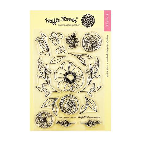Illustrated by Karla Jodoin, the Bouquet Builder 7 is the next set in this popular floral series. This set includes individual blooms and stems that can be put together to create a unique bouquet or custom background. Each of the detailed flower images are perfect for a variety of techniques such as coloring, embossing, and die cutting. This 5" x 7” set can be used alone or with any of the stamps in the Bouquet Builder family.