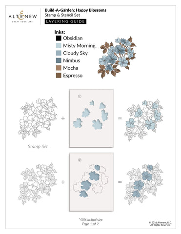 The Build-A-Garden: Happy Blossoms includes everything you need to stamp, color, and layer sweet blossoms, dainty buds, and graceful leaves with ease. A delightful floral stamp set featuring charming blooms and leaves, perfect for uplifting, heartfelt designs, a five-layer stencil set that adds vibrant color and effortless shading to every petal and leaf, and a coordinating die set that cleanly cuts the floral arrangement and key sentiments for crisp, dimensional results.