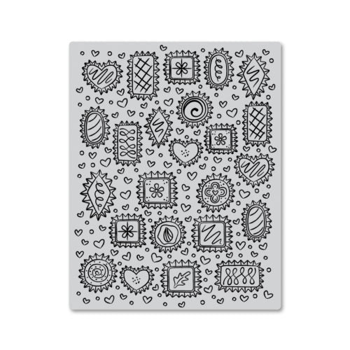 A sweet take on our Peek-A-Boo collection concept. Use this 5.5″ x 4.25″ chocolates-themed cling stamp to make bold backgrounds, or create interactive cards with our Peek-A-Boo Doors Fancy Die.