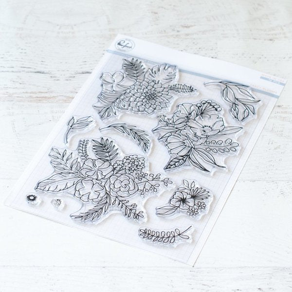 Make your scrapbook pages and handcrafted cards come to life with the crisp lines of each intricately designed flower stamp in this unique set, designed by A Rare Ruby Crafts. The florals lend themselves to multiple mediums, including watercolor, alcohol markers, colored pencils and more. They look beautiful both stamped & heat embossed.