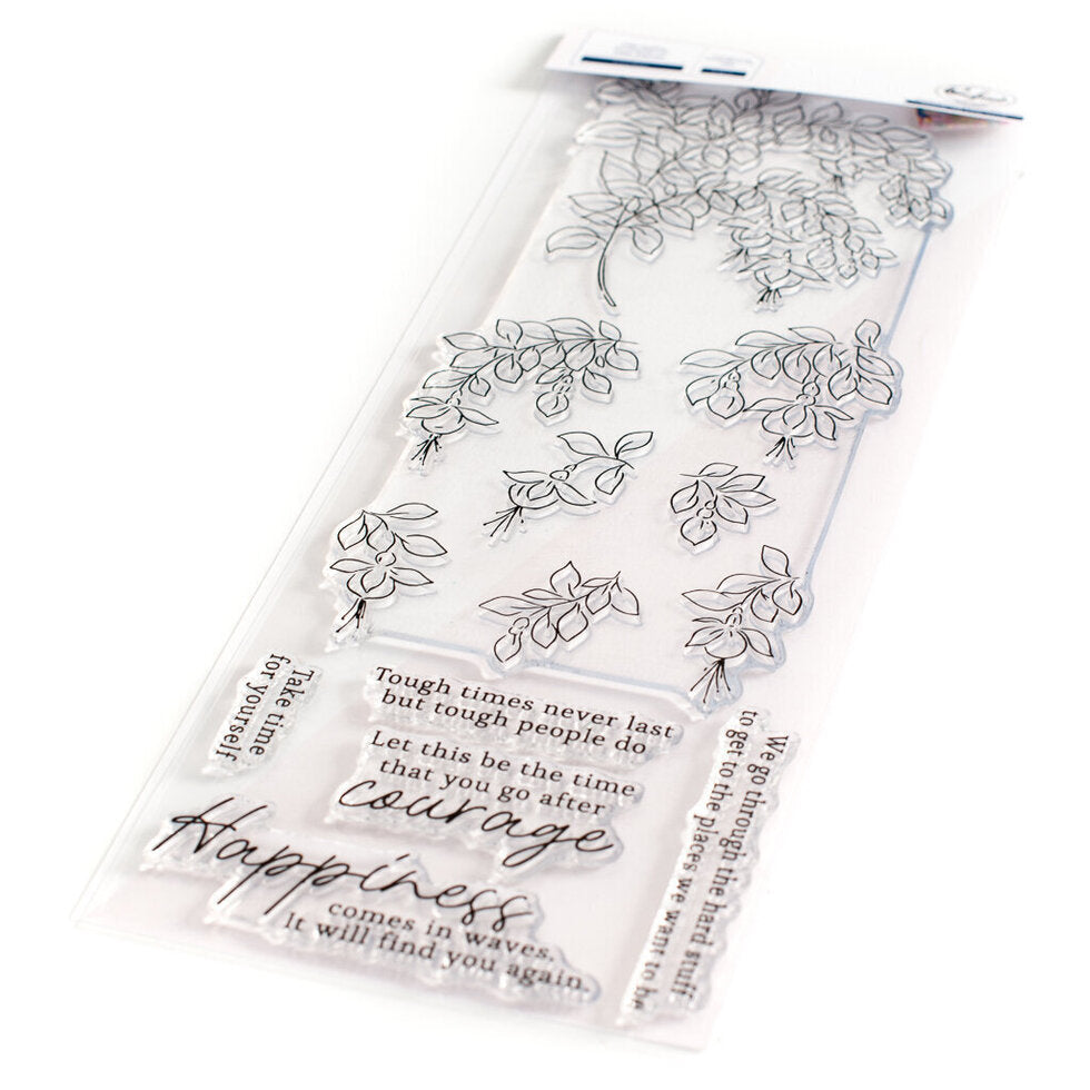 4 x 12 photopolymer clear stamp set designed by Valentine Leclerc Aquarelle. Made to coordinate with the Fuschias die, Fuschias layering stencils and Fuschias washi tape. Available for purchase separately.