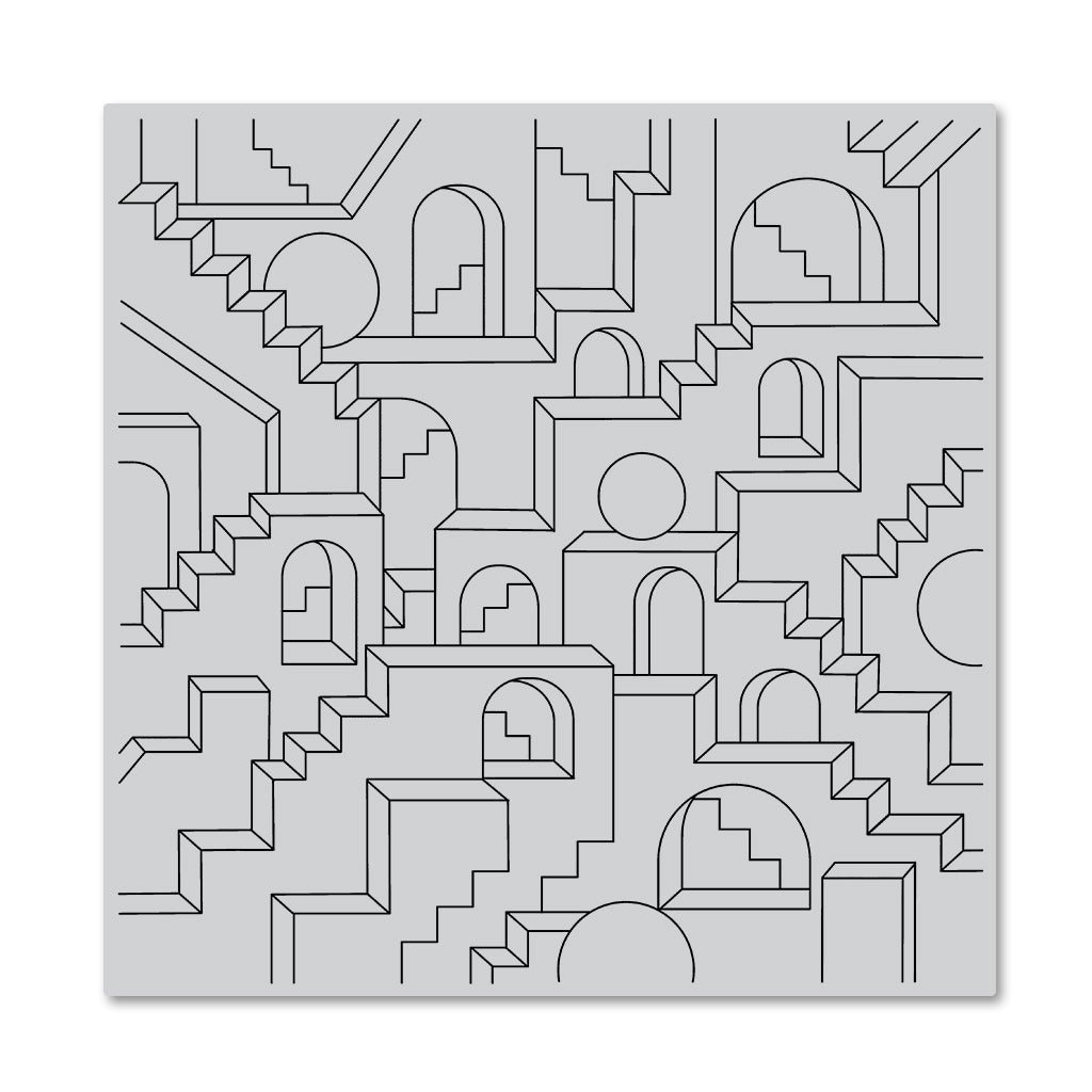 An abstract take on the classic city scene. This intricate background stamp is perfect for tone on tone stamping, or with a pop of metallic shine using your favorite Hero Arts embossing powder.