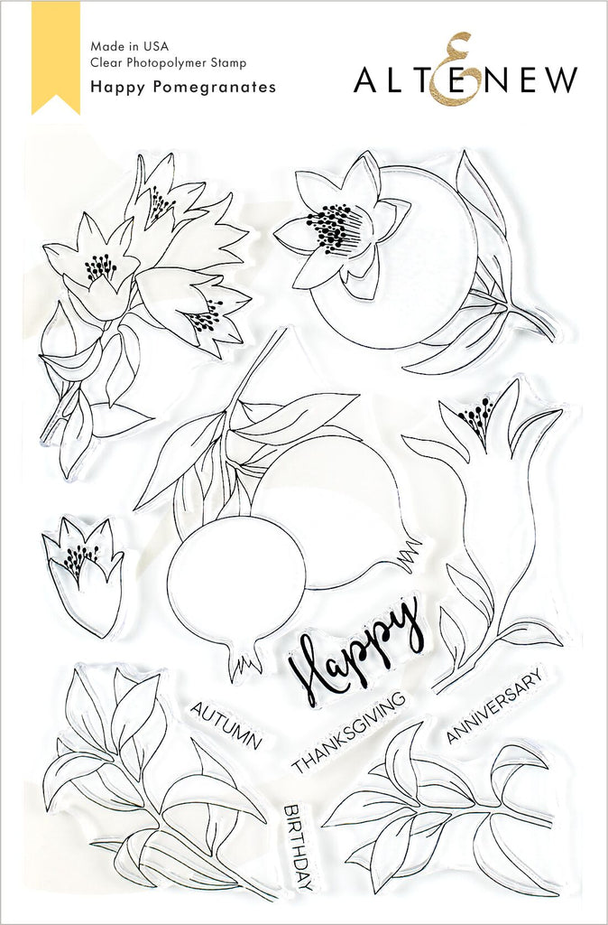 With hand-drawn images and simple sentiments, this lovely set of pomegranates has many elements that can be used to build gorgeous designs. You can easily color in the outlined images with any coloring medium for fun results, simply stamp them to create beautiful patterns, or use them in emboss resist techniques. Pair them with our floral stamps to create endless arrangements!