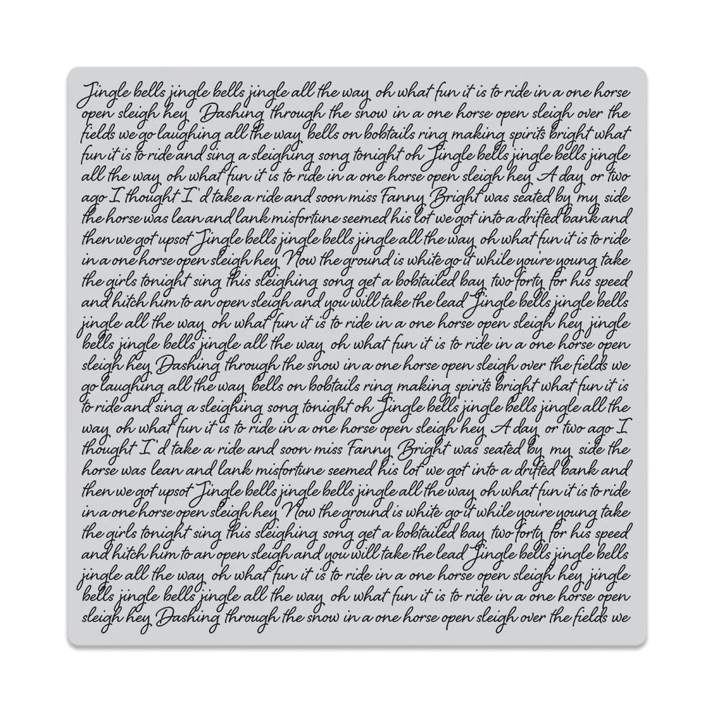 A fine script background filled with the lyrics from the song Jingle Bells. This stamp is perfect for your holiday cardmaking and crafting projects.