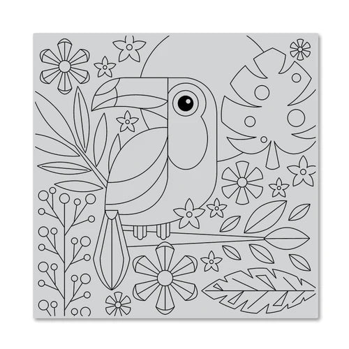 A cheerful and modern representation of a beloved toucan. This large and fun-to-color image is a celebration of tropical natural elements.
