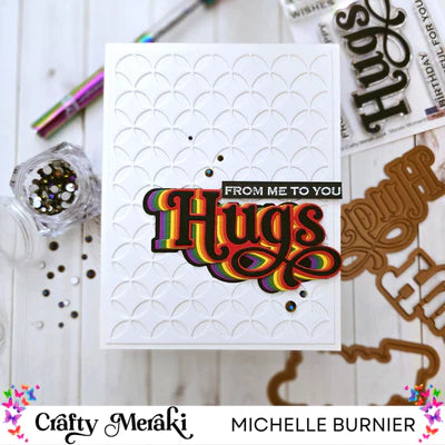 Experience the joy of giving with the Crafty Meraki - Meraki Moments Hugs Stamp Set. It includes a 3x4 stamp set with a main sentiment "hugs" and smaller supporting sentiments. Perfect for adding a heartfelt touch to your handmade cards. Suitable for scrapbooking and cardmaking.