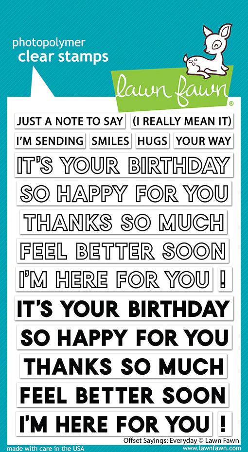 This sentiment set will help you make all of your everyday greetings. Layer the outline sentiments over their solid counterparts to create a cool offset-type effect. Or, simply use the outline letters and color them in!