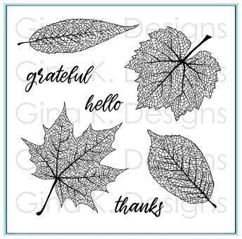Clear Mini Stamps- Skeleton Leaves 4"x 4". This versatile stamp set is fabulous for card making and scrapbooking. This stamp set is made of premium quality photopolymer and is ready to use with acrylic blocks.