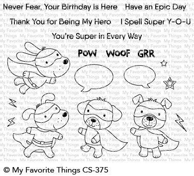 Our pets have a super power — the ability to completely overwhelm us with their love and devotion. These masked pups are truly super though, and have flown in just in time to rescue your next project. A quartet of pups sport superhero attire and come equipped with a variety of accessory images to emulate a comic book style. Pack a punch on your cards with this thrilling set.