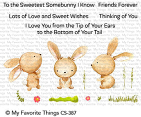 Wildflowers dotting a grassy landscape is an ideal spot for fluffy bunnies to frolic. This absolutely adorable trio is lovable, huggable, and perfect for spring and Easter card making. Hop to it – make Sweetest Somebunny the newest addition to your stamp menagerie!
