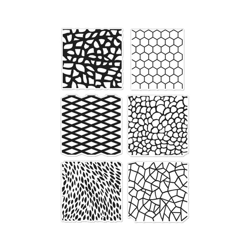 This unique set is designed to give you foundational and building layers that complement eachother when stamped next to or on top of eachother. Let your favorite ink colors shine with these six distinct patterns.