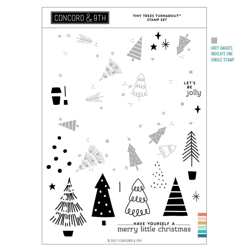 Create backgrounds full of happy Tiny Trees in just four turns of this festive Turnabout! These little evergreens are so cute that we've also included individual stamps for each tree so you can also create charming forests and focal points for your holiday cards. Coordinates with the Tiny Trees Dies. 6" x 8". 19 stamps.