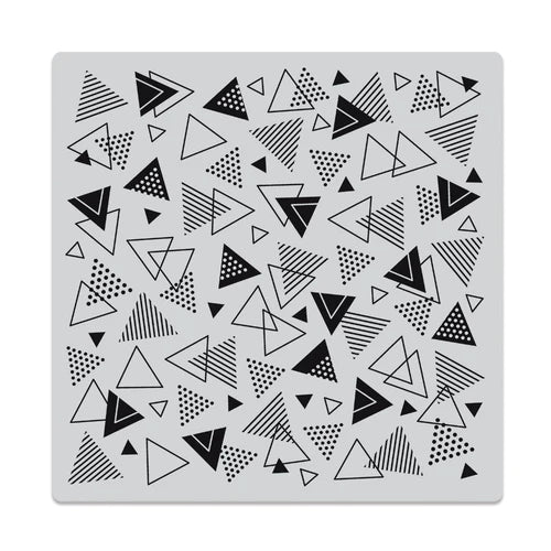 A retro-inspired mix of triangles in a variety of sizes, some filled, some open, and some with fun textures.
