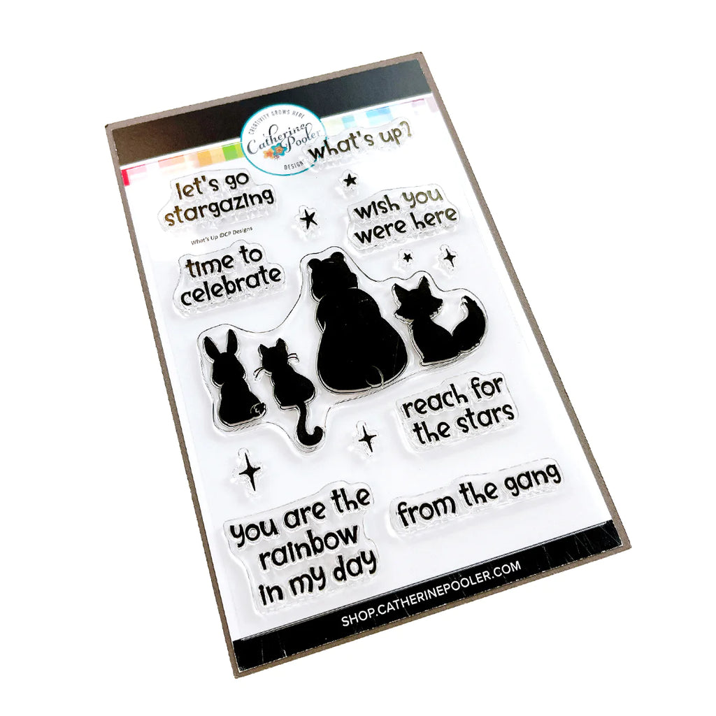 Grab your buddies, it's time for summer sky gazing... The What's Up Stamp Set features forest friends who are gathered together to take in the night sky. Change the theme by adding elements from the Up Above Stamp Stamp Set.