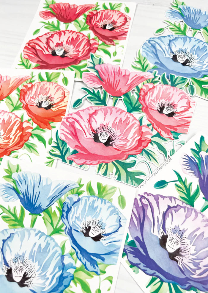 Watch your blank cardstock panel come to life while ink blending using our Gleaming Poppies Stencils. This stencil collection contains five 6x6 inch stencils.