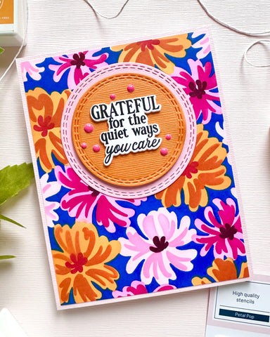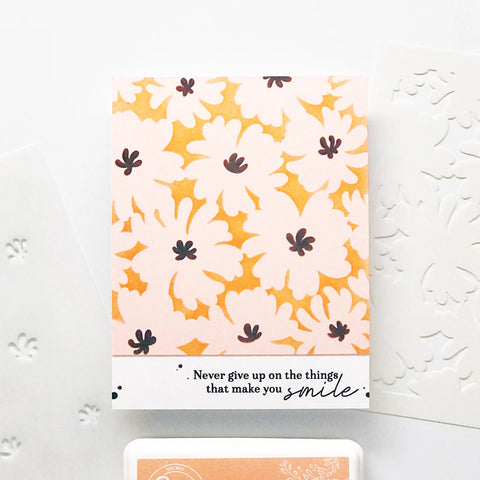 Create bold, joyful backgrounds with the Petal Pop layering stencil set, designed by Inna Moreva. This playful design features bold flowers with layered petals that bring dramatic movement to your cards. Each stencil builds rich color and dimension, letting you craft everything from soft pastels to vibrant, modern statements. You’ll love how quickly it fills your background with cheerful energy.