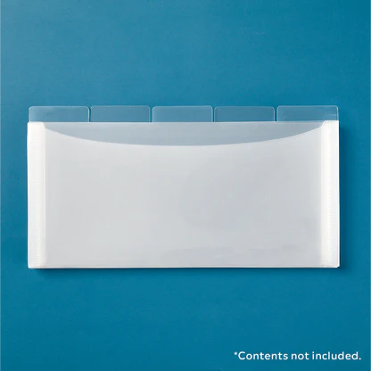 Includes 5 plastic pocket folders with tabs and labels.
