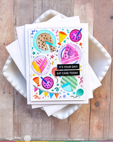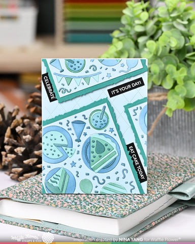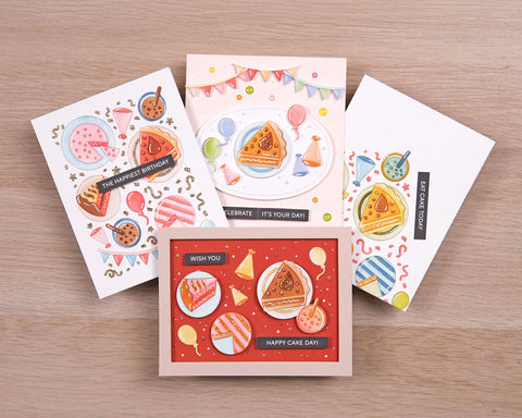 Get the party started with this fun setting of cakes, balloons, confetti, and more! The Cake Time Texture Die adds a cheerful touch to birthday and celebration cards. Use it on its own for a subtle textured look or pair with the Cake Time Stencil and Cake Time Sepia Layers Stencil to add pops of color to each element. You can also trim out the shapes to create your own festive arrangements.