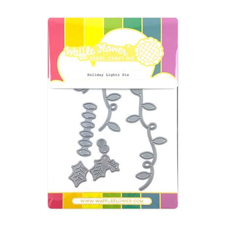 The Holiday Lights die adds a bit of festive whimsy to any holiday card! The design of this set makes it a snap to create multi-color strands of Christmas lights! And if you need more holiday cheer, this set also includes some classic holly berries and leaf dies!