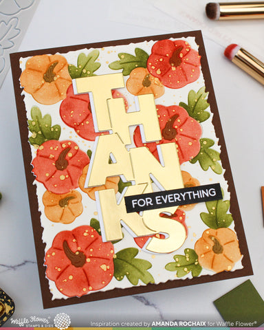 Celebrate the season with this charming background of pumpkins and leaves! The die base is exactly 4.25” x 5.5” to help you line it up easily with a standard A2 card panel. Use it on its own for a subtle textured look, or pair it with the coordinating Pumpkin Time Coloring Stencil for easy coloring. Designed to fill your card front and bring that warm autumn feeling to any project. You can also trim out the shapes to create your own arrangements.