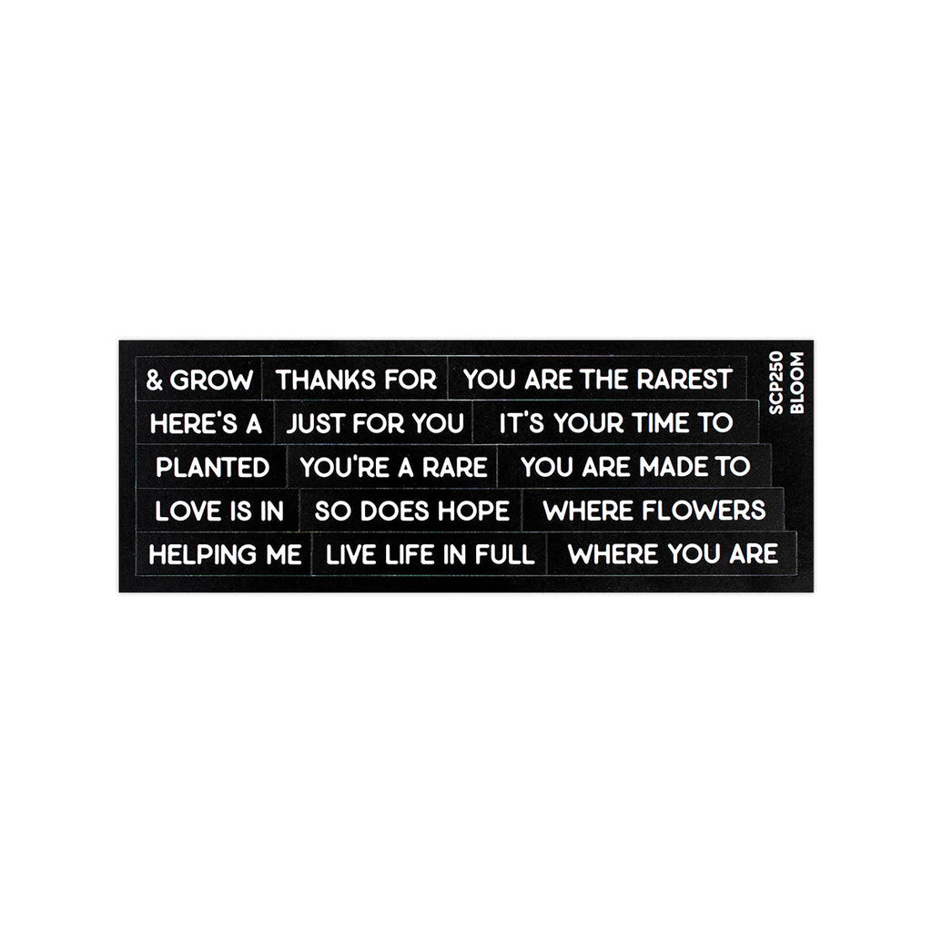 Add the perfect Bloom-themed sentiment to your cards with this subsentiments diecut sheet. This sheet includes 15 sentiment strips in 1/4" increment in width. Precut - easy tear-off diecut shapes. Each sheet comes in a clear bag for protection and storage.