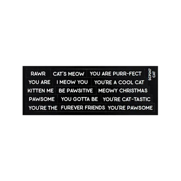 Add the perfect Cat sentiment to your cards with this subsentiments diecut sheet. This sheet includes 15 sentiment strips in 1/4" increment in width.