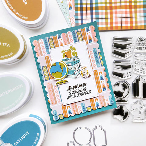 Inspired by winter colors and cozy wallpaper patterns, the Right at Home Patterned Paper features charming prints like shelves of books, tea cups, pretty plaids, and honeycomb textures. With a soothing Spa Color palette of Clay Mask, Amber, Green Tea, Wintergreen, Skylight, Glacier, and Cargo, this pack brings a calm to your projects. It’s the perfect collection to make your cards and crafts feel truly Right at Home.