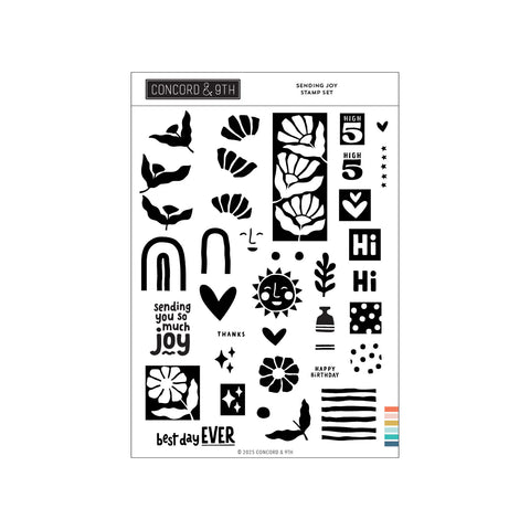 Add a little happiness to your cards with the Sending Joy Stamp Set! This set is filled with playful images that come together in 2–3 easy steps to give you colorful, layered designs. Pair them with the coordinating Sending Joy Dies to cut out each image with a fun postage-style border that’s perfect for adding sweet little accents to your projects. 6" x 8". 33 stamps.