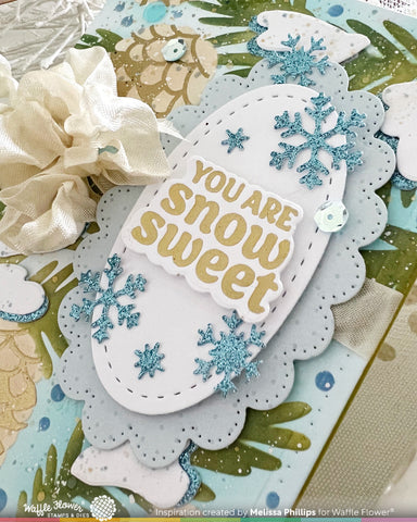 This die set cuts out the pinecones and snow shapes for the Snowcapped Pinecone Stencil and Snowcapped Pinecone Details Stamp Set. The dies are numbered to make matching the pieces to the stamp and stencil easy.