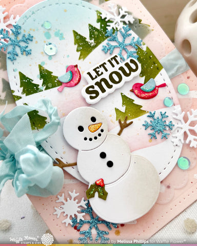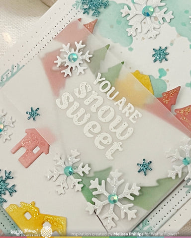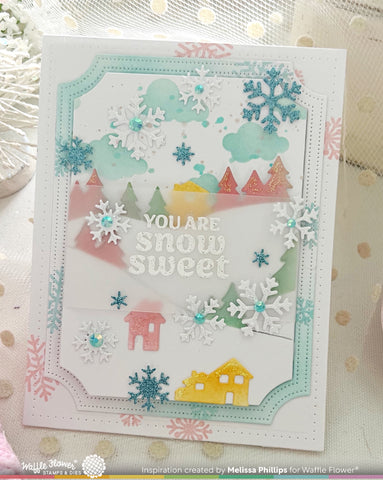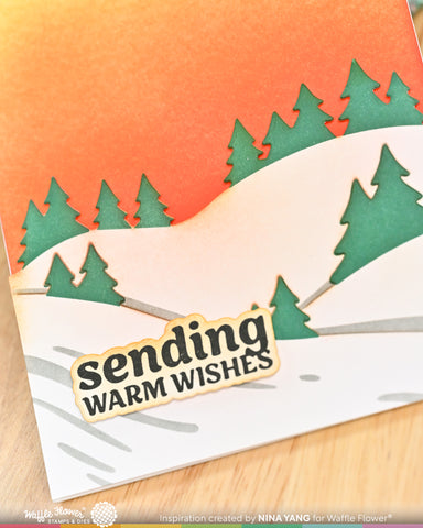 This stencil set helps you create snowy hill scenes with trails, sky, trees, and clouds. The wavy edge on stencil two lines up with the Snowy Hills Die for added definition. Use with the die and add-on die for more options.